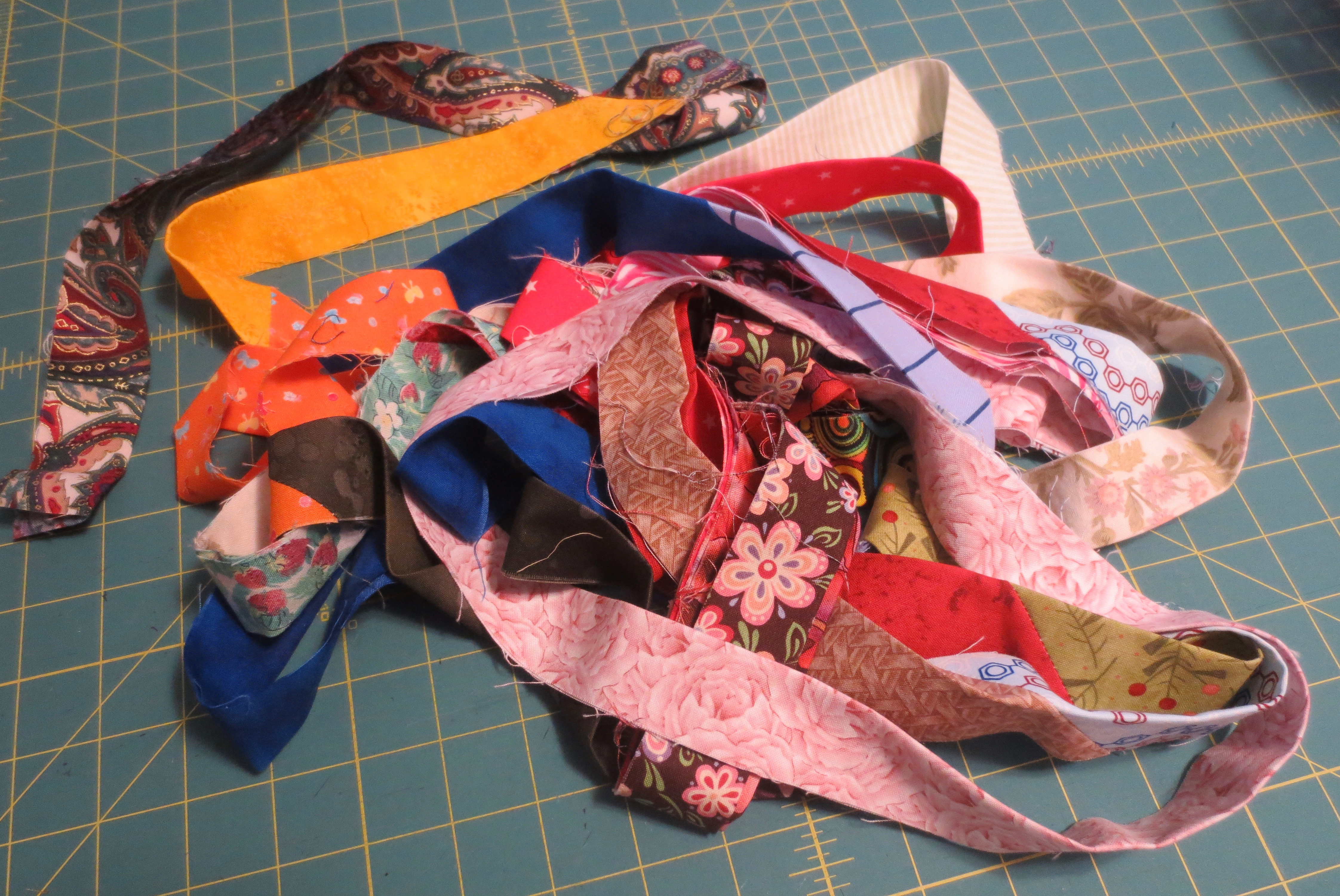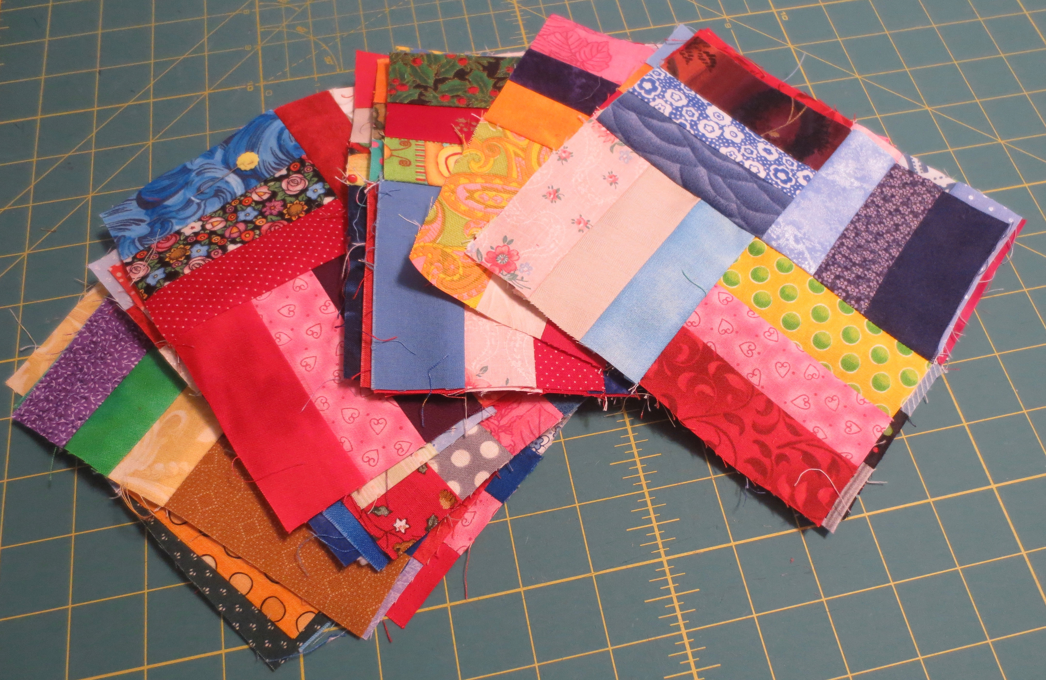I took two projects to the bee today. I have a quilt that needs the binding done; I wanted to make a pieced binding so I took my strips with me. I need over 300″ and I thought it would take a lot longer to get that much done than it did. I wished that I had taken the quilt with me so I could stitch the binding on to it. I moved on to my second project before lunch. I’m making some rail fence blocks for another Community Quilt. I got 31 more blocks finished and that is certainly enough to get the centre of the quilt done. Both of these quilts are scrap projects – how is it that I never run out of scraps?
