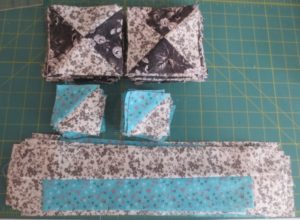It wasn’t until after a late lunch that I was able to start on my mystery quilt clue. Every week there are more HSTs but some of the pieces from the previous steps are being attached so it feels like soon I’ll be able to see whether or not I like my colours. I know I like my colours but I’m anxious to see if the turquoise I’ve used is going to be the one that stands out in the end project. I’d be okay if it was either the dark or the light but I’m expecting stars of some sort and I’d like them to be turquoise.